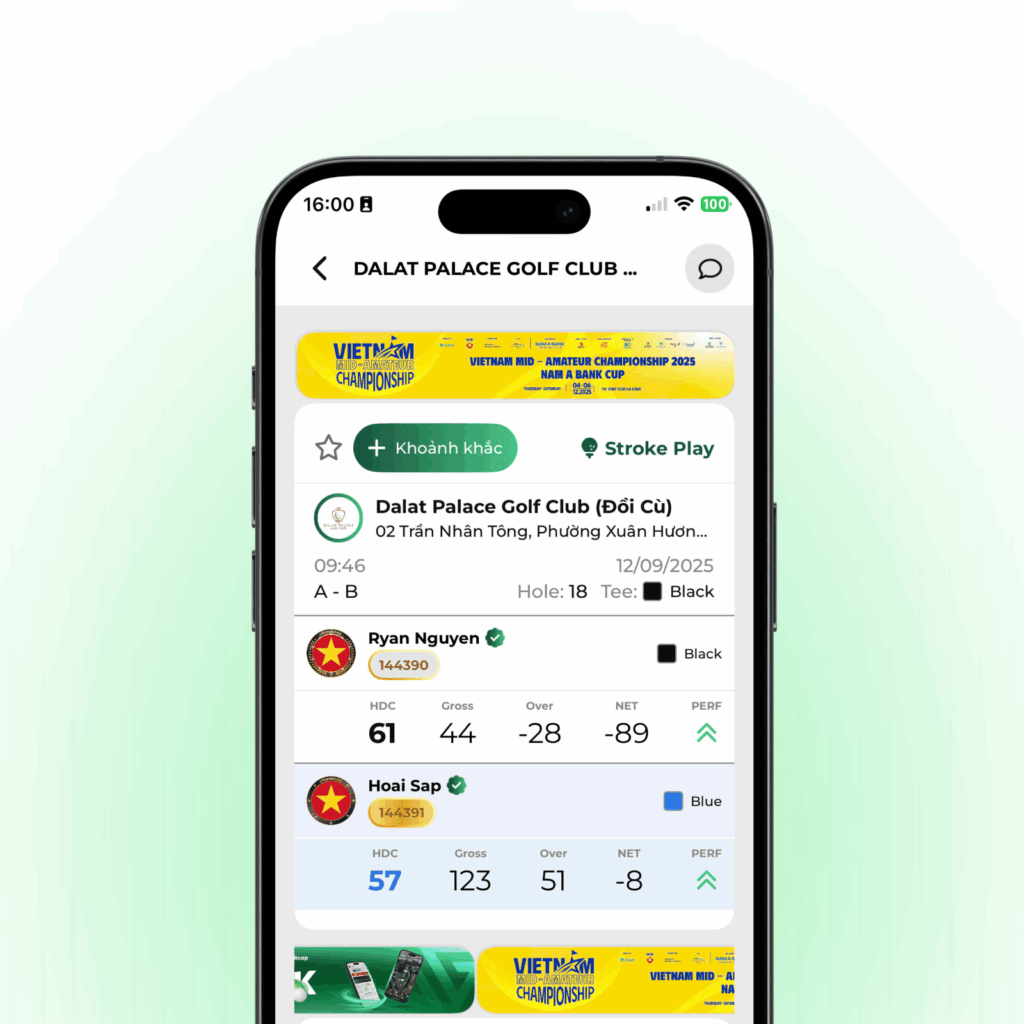 Nền tảng cập nhật điểm số trực tiếp cho giải đấu – minh bạch, hấp dẫn và chính xác theo chuẩn quốc gia của vHandicap.